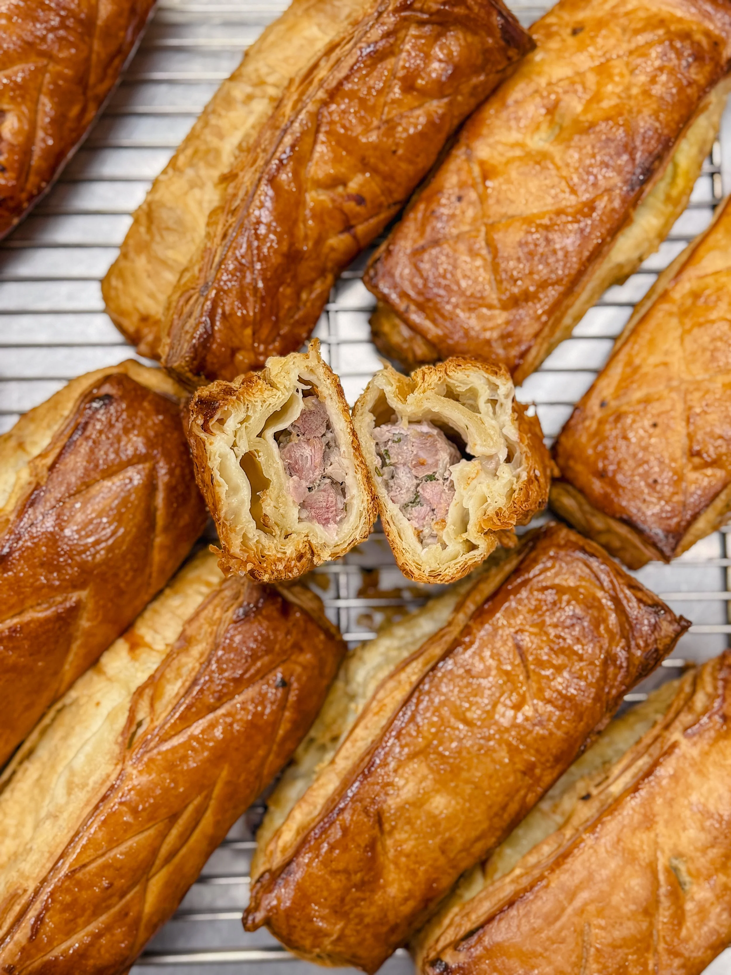 Every pie is crafted with care, using flaky puff pastry and marinated fillings inspired by the pâté lorrain and pâté champenois traditions.